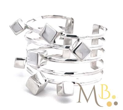BRAZALETE MEDIA CAÑA CINCO LINEAS CUBOS DISPERSOS PLATEADO $ 100.00 MXN - 628 Colores: BAÑO DE PLATA Agregar al Carrito