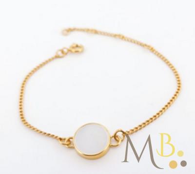 PULSERA DE PIEDRA BICELADA 1CM CON CADENA ANCLA 18 Y EXTENCION GIOTO DE LATON CON 3 BAÑOS DE ORO