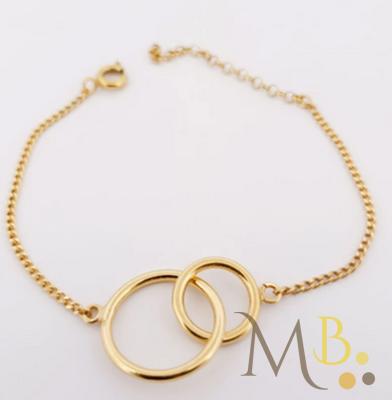 PULSERA DOS AROS ENTRELAZADOS CON CADENA ANCLA Y EXTENSION DE 3CM