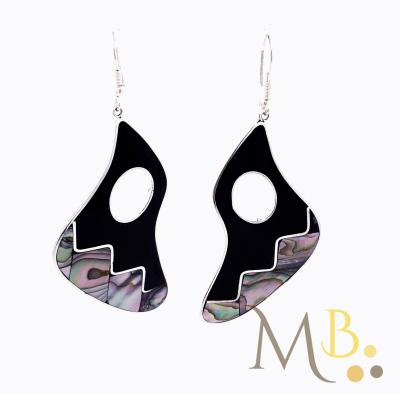 ARETE CALDO RELLENO DE CONCHA DE ABULON 4.3 CM DE ANCHO