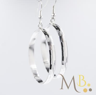ARRACADA REDONDA GRANDE CON DISEÑO EN CORTE DIAMANTADO DIAGONAL 4MM DE ANCHO