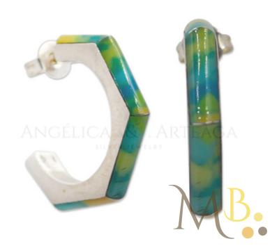 ARRACADA HEPTAGONO CHICA CON RESINA LATON