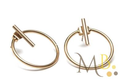 ARETES DE BASTON CON ARO DE LATON Y BAÑO DE ORO DE 3 CAPAS