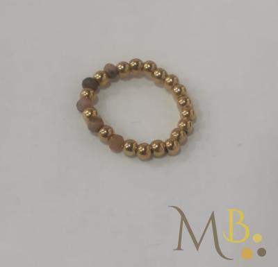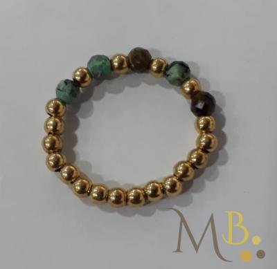 ANILLO ELASTICO DE BOLITA DE LATON DE 3MM CON PIEDRA CRISCOLA CON BAÑO DE ORO DE 3 CAPAS