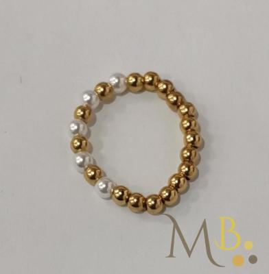 ANILLO ELASTICO DE BOLITA DE LATON DE 3MM CON PERLA Y BAÑO DE ORO DE 3 CAPAS